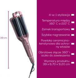 Dosáhněte během chvilky perfektních vln s vlnkovačkou BEURER HT65 4v1. Vytvoříte Beach Waves, přirozené vlny, Mermaid Waves i vodní vlny. Pro ochranu vlasů je povrch opatřen keramicko-keratinovou povrchovou úpravou. Potěší také rychlé zahřátí, 4 nastavení teploty a otočný kloub 360° proti překroucení kabelu.