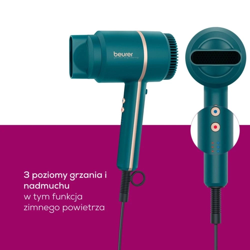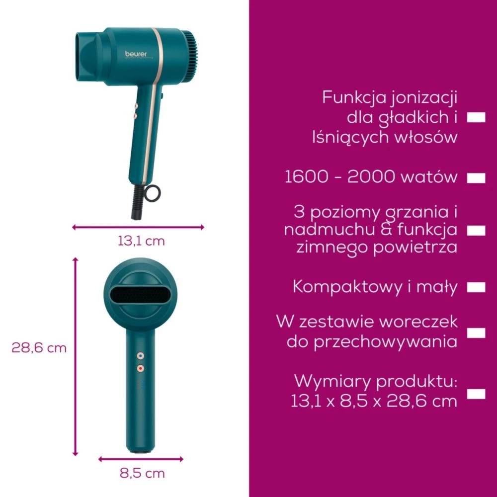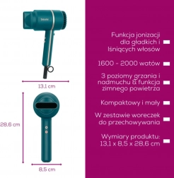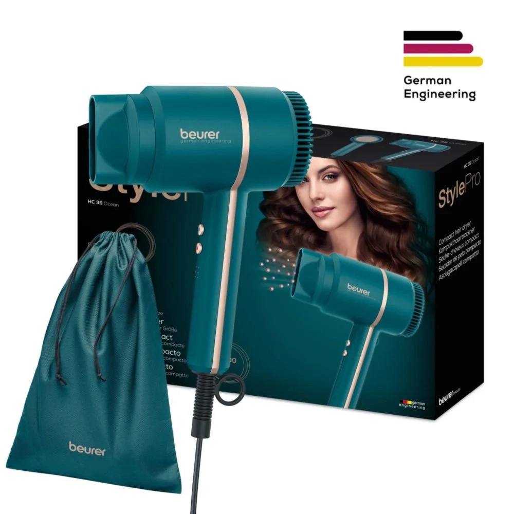 Beurer HC 35 Ocean je praktický malý fén, který kombinuje moderní design s vysokým výkonem. Díky kompaktním rozměrům a přiloženému sáčku na uložení je ideální do koupelny i na cesty. Integrovaná ionizace snižuje krepatění, dodává vlasům lesk a usnadňuje jejich úpravu.