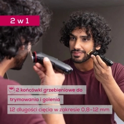 Díky dvěma nastavitelným hřebenovým nástavcům s 10 délkami střihu a jemné mikroregulaci 0,8 a 1,2 mm dosáhnete upraveného vousu i precizních kontur. Přístroj i střihací hlavu lze snadno omýt pod tekoucí vodou, což zajišťuje hygienické používání a rychlou údržbu.