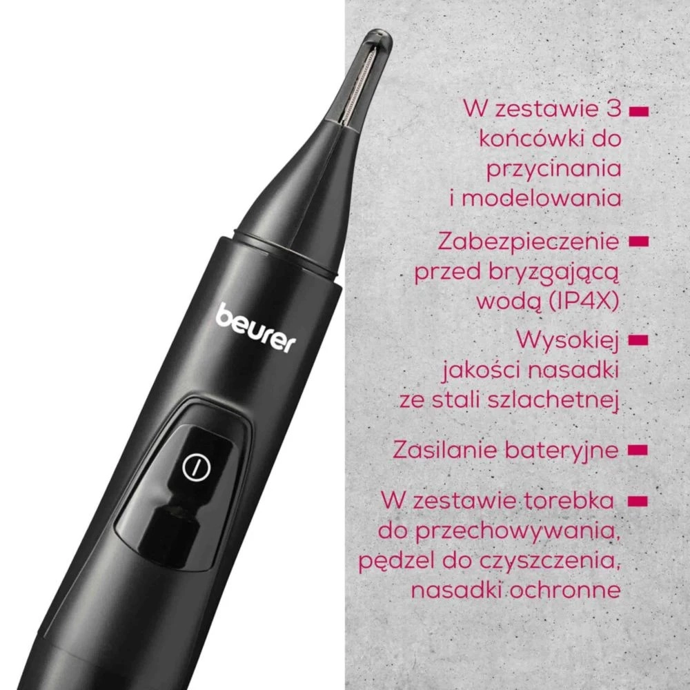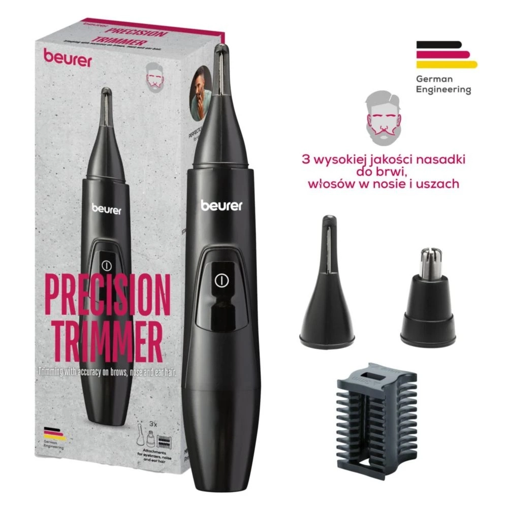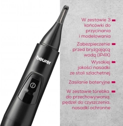 Kompaktní zastřihovač Beurer MN2X je ideální pro každodenní péči o obočí, nos a uši. Nabízí precizní úpravu díky 3 výměnným nástavcům, nerezovým břitům pro maximální komfort pokožky a odolnost proti stříkající vodě IPX4. Snadné čištění a praktické cestovní pouzdro z něj dělají skvělého pomocníka doma i na cestách.