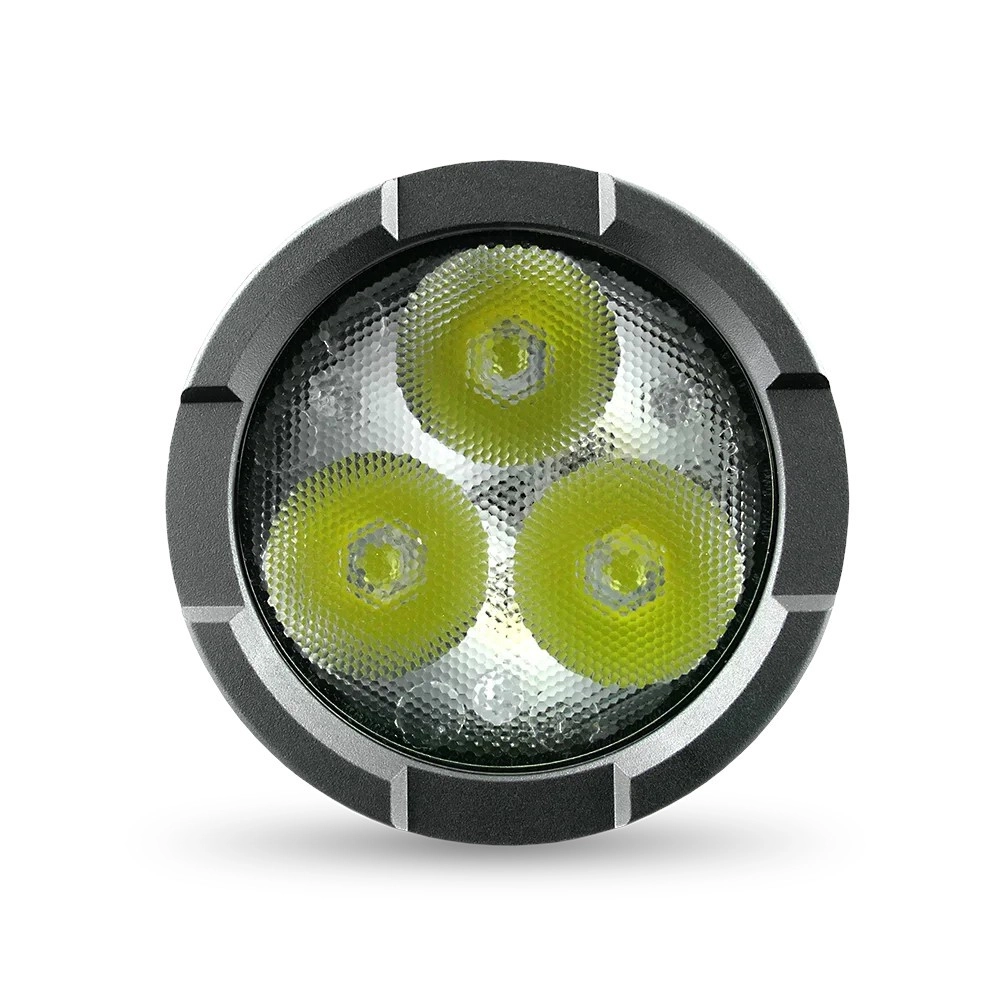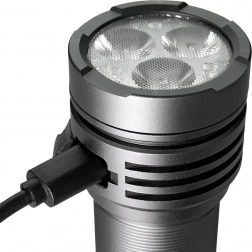 Troje výkonné LED OSRAM P9 poskytují soustředěný i široký kužel světla pro jistotu viditelnosti v terénu, při práci i nouzi.
