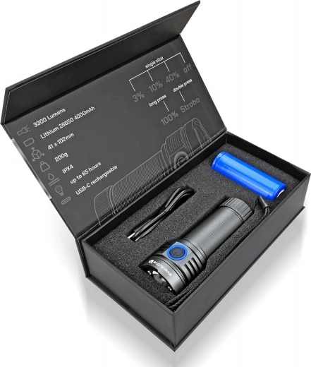 Odolné tělo z hliníkové slitiny s krytím IPX4 zvládne náročné podmínky, déšť i každodenní používání. Vyměnitelný Li‑ion akumulátor 4000 mAh zajistí dlouhou výdrž, nabíjení probíhá snadno přes USB‑C přibližně za 7 hodin. V balení najdete i poutko na zápěstí a dárkové balení – připravené potěšit každého dobrodruha.