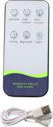 Ovládání je maximálně jednoduché – na těle zařízení najdete intuitivní tlačítka a k dispozici je i praktický dálkový ovladač. Zvolte kontinuální nebo přerušovaný režim mlhy, nastavte časovač a barvu světla podle nálady. Funkce auto stop při prázdné nádržce chrání zařízení a zvyšuje bezpečnost.