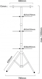 - 62–150 cm (teleskopická)