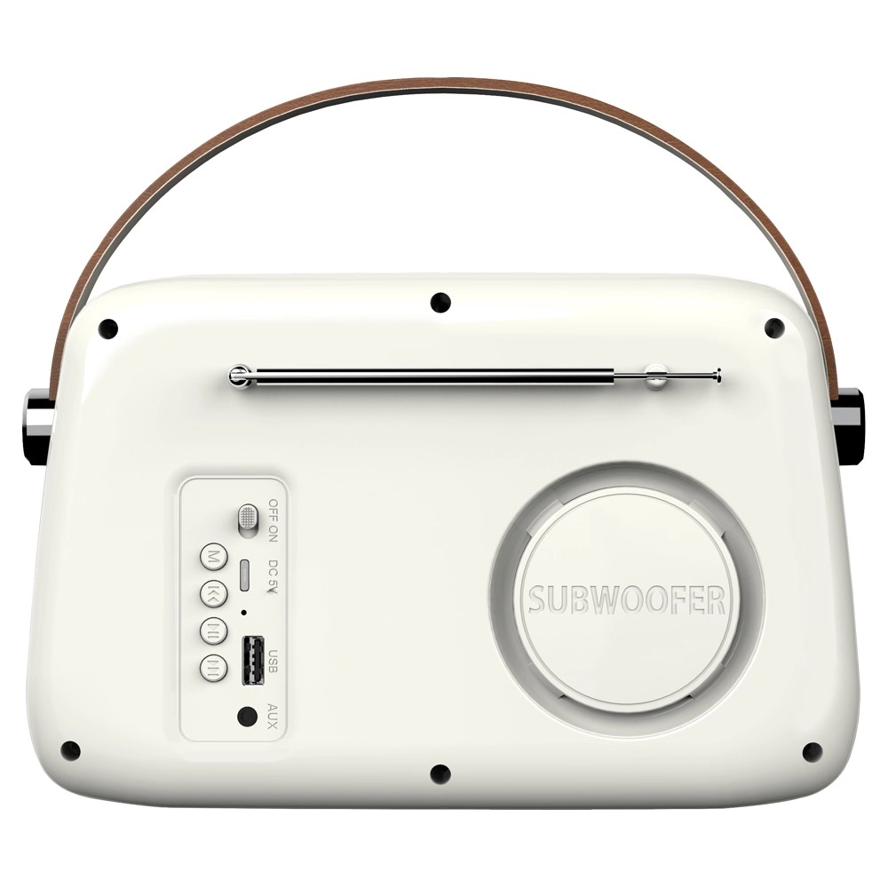- Retro vzhled s přehledným kruhovým ciferníkem a praktickým madlem pro snadné přenášení.