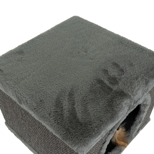 Odolný přírodní sisal láká k broušení drápků, zatímco měkký plyš uvnitř i nahoře poskytuje příjemné místo k odpočinku.