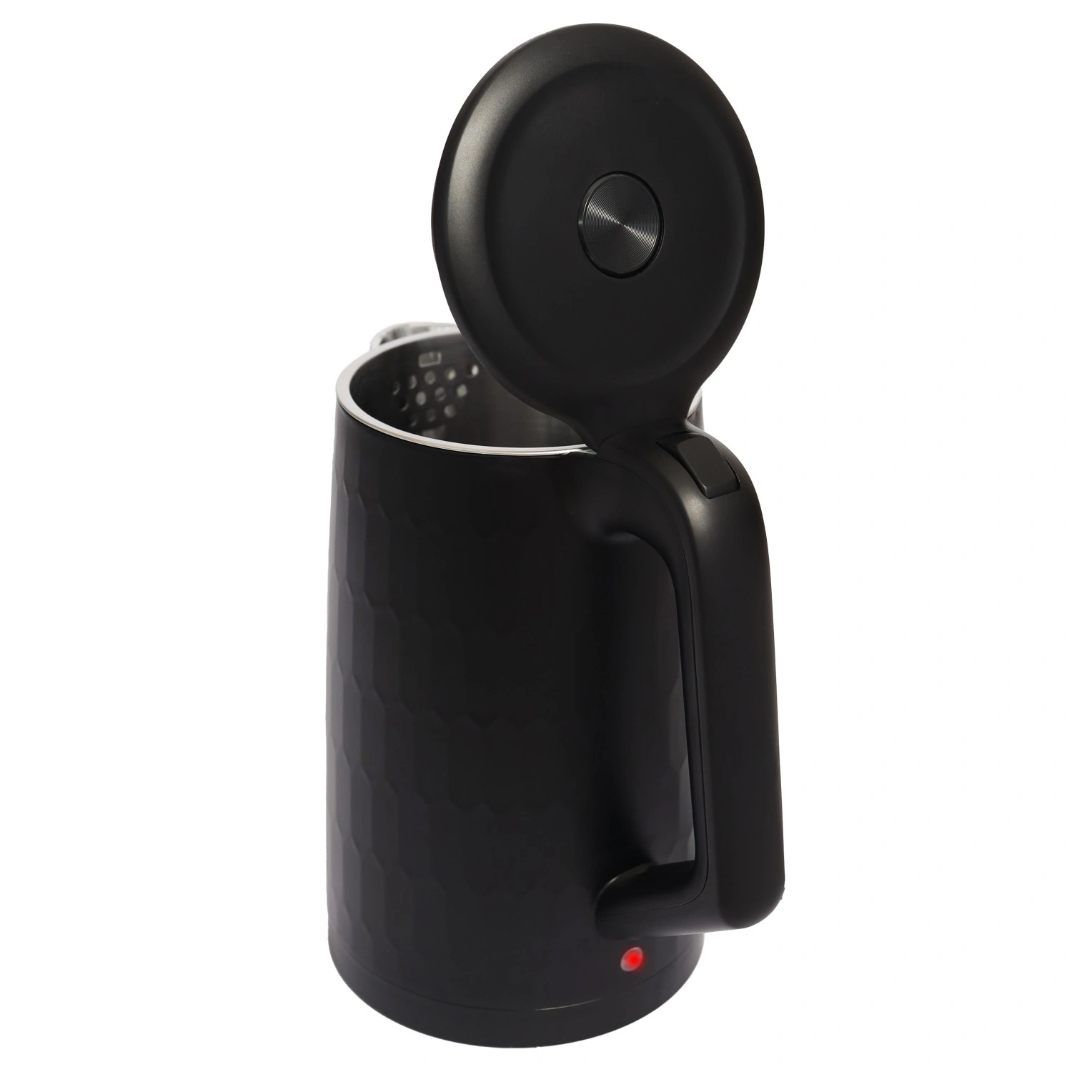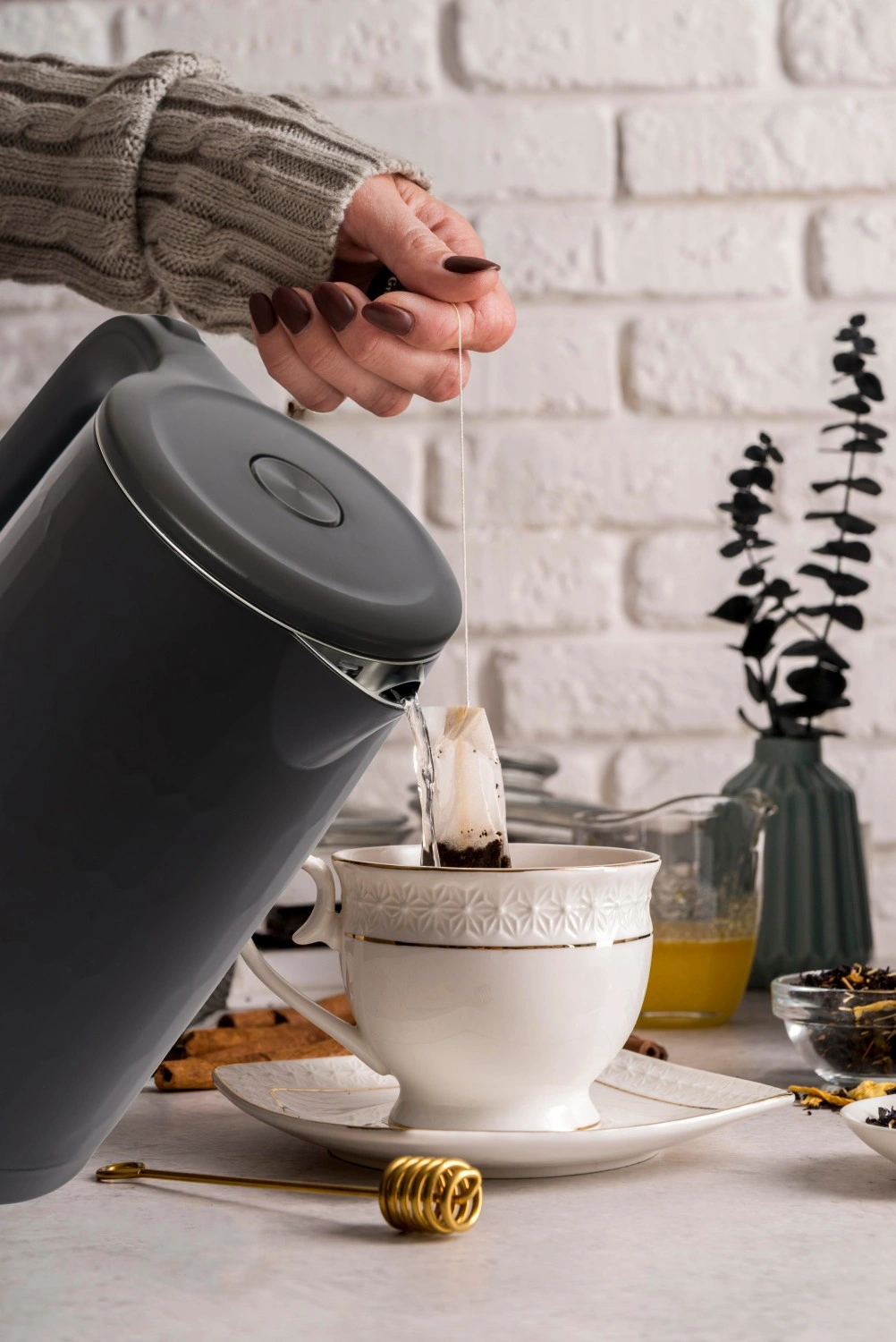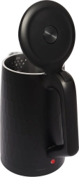 Promyšlené detaily usnadňují každodenní použití: tlačítko pro otevření víka v rukojeti umožňuje pohodlné ovládání jednou rukou, světelná kontrolka signalizuje provoz, vnitřní ukazatel hladiny pomáhá přesně dávkovat vodu a 360° otočná základna umožní postavit konvici z jakéhokoli směru. Samozřejmostí je automatické vypnutí po dovaření a ochrana proti chodu nasucho pro maximální bezpečnost.