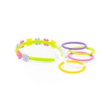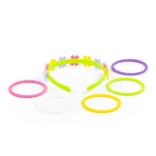 - Zelená čelenka s květinami; náramky v růžové, fialové, žluté, zelené a bílé