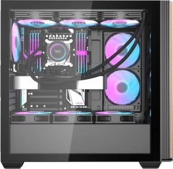 Stylová a prostorná PC skříň Darkflash DS900WS nabízí panoramatickou konstrukci bez A‑sloupku, kombinaci dřeva, kovu a tvrzeného skla a skvělé proudění vzduchu. Podporuje základní desky ATX/M-ATX/ITX, dlouhé grafické karty a vysoké chladiče CPU. Součástí jsou 4 předinstalované ARGB ventilátory, možnost až 10× 120 mm ventilátorů a radiátor 360 mm. Praktické prachové filtry, 7 PCI slotů a bohaté I/O zajistí snadnou stavbu i budoucí rozšíření.