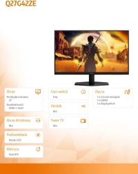 Monitor Q27G42ZE je navržen pro hráče i náročné uživatele, kteří chtějí maximální plynulost a precizní barevné podání. Technologie Fast IPS přináší rychlé přechody a stabilní barvy napříč širokými pozorovacími úhly, zatímco 240Hz obnovovací frekvence minimalizuje rozmazání obrazu a trhání.