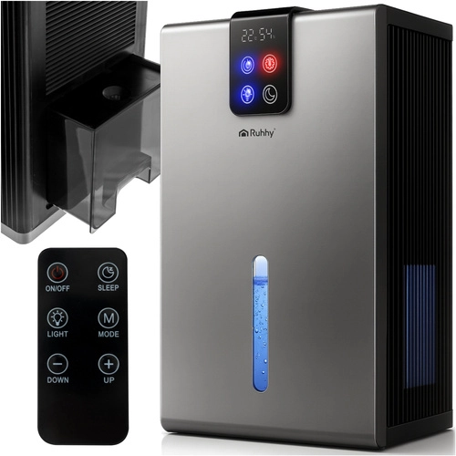 Odvlhčovač RUHHY přináší pohodlí a zdravější domácí klima. Díky technologii Peltier pracuje tiše a efektivně, snižuje vlhkost, eliminuje zápachy a omezuje šíření plísní a hub. Integrovaný hygrometr a hygrostat sledují a regulují vlhkost i teplotu v reálném čase, zatímco funkce automatického vypnutí a odmrazování zajišťují bezobslužný a bezpečný provoz.