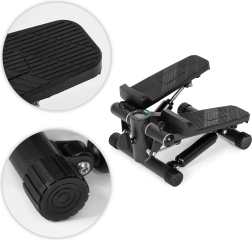 Kompaktní stepper s odporovými expandéry pro domácí trénink umožní efektivně posílit spodní i horní část těla, zlepšit kondici a pálit kalorie. Robustní konstrukce z oceli, ABS a TPE, protiskluzové pedály, nastavitelná intenzita a 5funkční LCD displej pro sledování času, kroků a kalorií. Součástí je ochranná podložka a stabilní nožky pro bezpečné cvičení na každém povrchu.