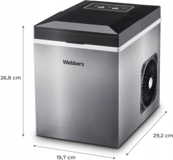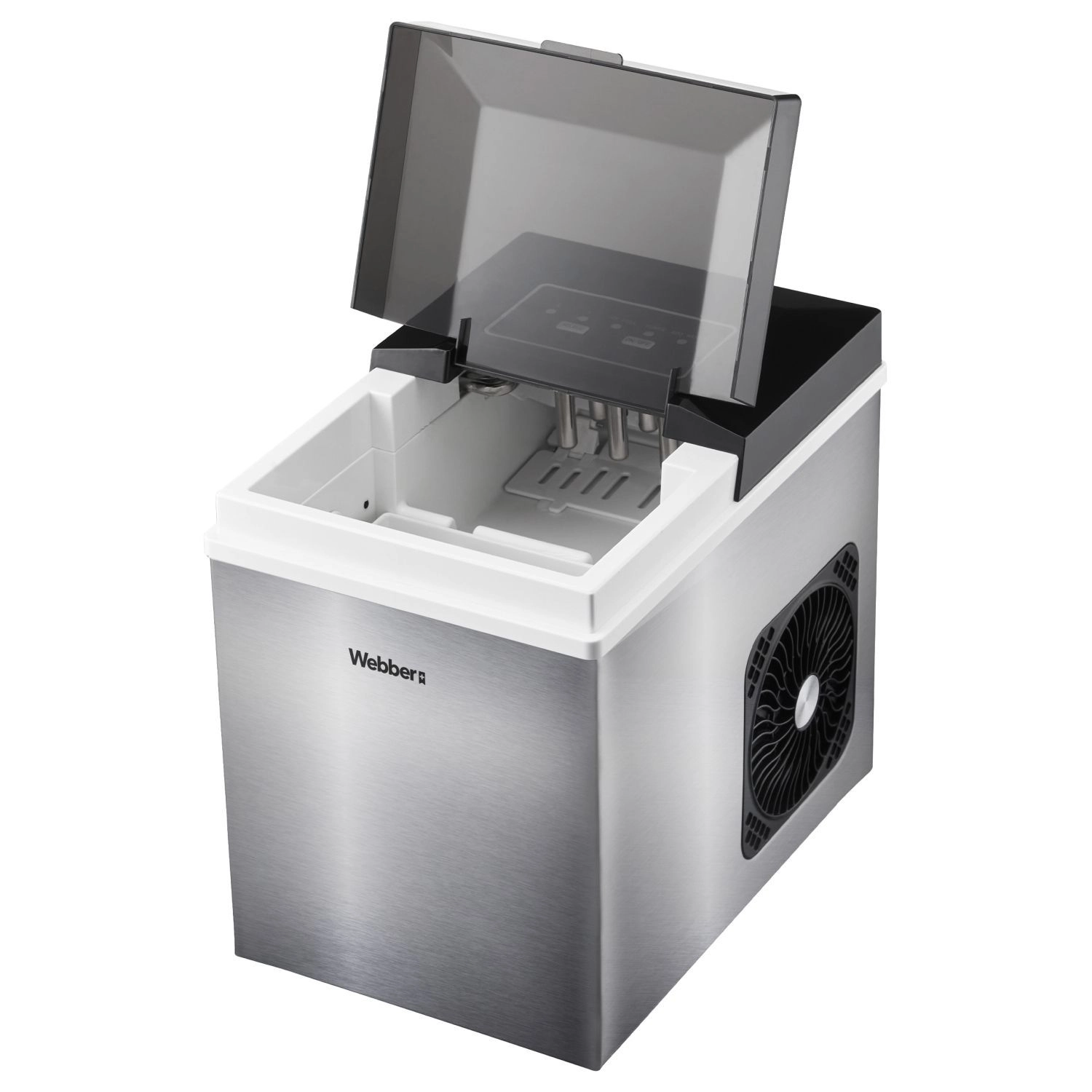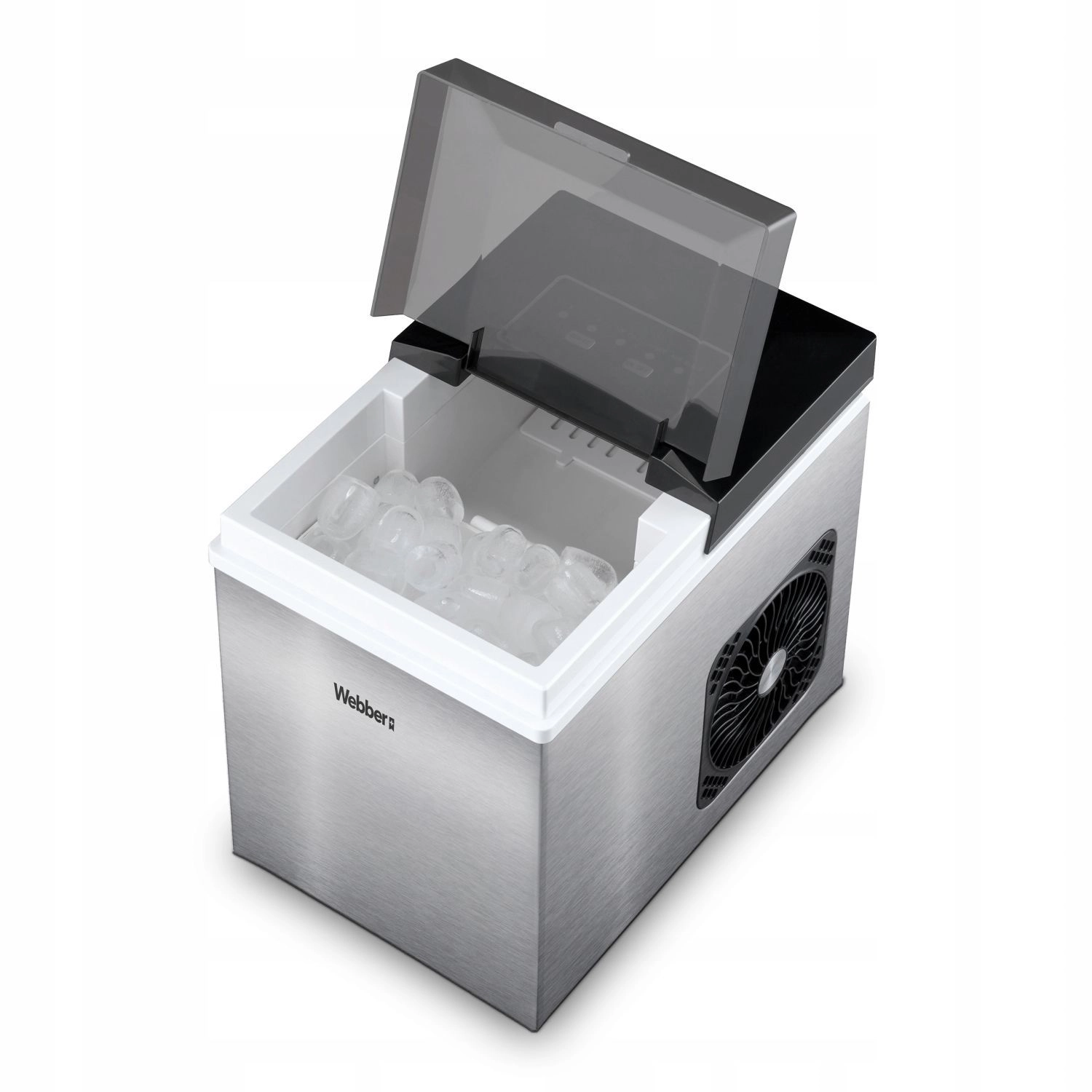 Už žádné formičky a čekání. Výrobník ledu WEBBER je spolehlivý pomocník pro rychlé ochlazení nápojů během léta, grilování i rodinných oslav. Kompaktní rozměry se vejdou na většinu kuchyňských linek a automatický provoz s přehledným LED panelem zaručí snadné použití. Vyberte si 2 velikosti kostek (S/L) podle typu nápoje a užijte si vždy čerstvý led po ruce.