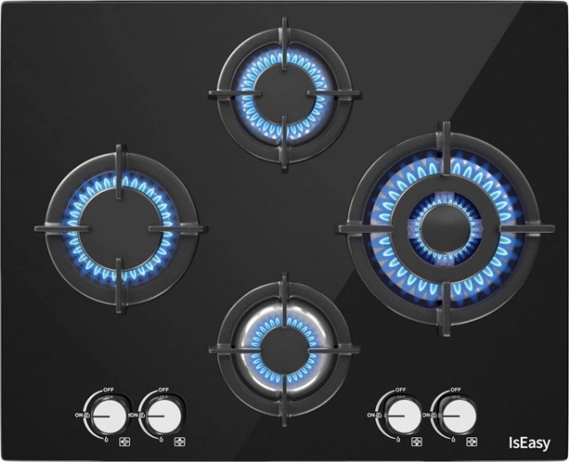 Varná deska Iseasy vyniká kombinací stylu a výkonu. Čtyři hořáky s výkonem 3,3 kW, 2,7 kW, 1,75 kW a 1 kW pokryjí vše od jemného dušení až po rychlé smažení. Odolné tvrzené sklo a litinové rošty zaručují dlouhou životnost a snadnou údržbu, zatímco pulzní zapalování usnadňuje každodenní používání.