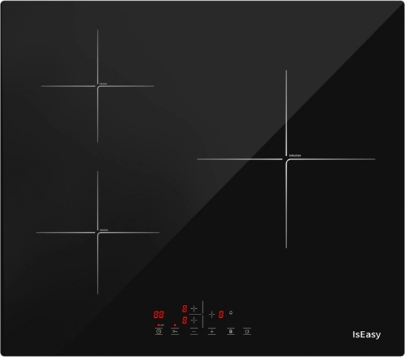 Moderní indukční deska IsEasy s 3 varnými zónami, výkonem až 2600 W na zónu v režimu Booster, 9 úrovněmi výkonu a dotykovým ovládáním přináší rychlé a přesné vaření. Nabízí časovač až 99 minut, dětský zámek, indikátor zbytkového tepla a tichý provoz. Minimalistický design v černé barvě skvěle zapadne do každé kuchyně.