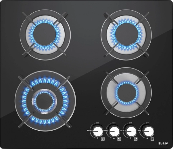 Plynová varná deska ISEASY s šířkou 60 cm je skvělou volbou do moderní kuchyně. Díky elegantnímu černému sklu a litinovým roštům působí prémiově, zároveň je odolná vůči teplu a poškrábání a snadno se udržuje. Automatické přerušení přívodu plynu při zhasnutí plamene přináší vyšší bezpečnost pro celou domácnost.