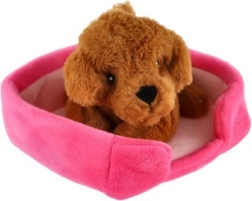Připravte svému dítku radost s plyšovým mazlíčkem, který má svůj vlastní pohodlný růžový pelíšek. Děti si užijí jemné mazlení, ukládání zvířátka ke spánku i každodenní hraní na pečování o domácího mazlíčka.