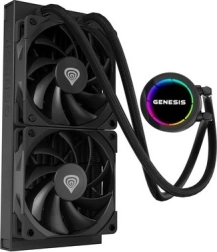 Design blokopumpy s otočným logem GENESIS o 360° vám dovolí doladit vzhled přesně podle orientace montáže. Kompaktní tělo zvyšuje kompatibilitu s masivními chladiči VRM na moderních deskách. Opletené hadice jsou odolné, přitom vysoce flexibilní a lze je otočit až o 180° pro čisté vedení v case. Matná povrchová úprava radiátoru s vytlačeným logem dodá sestavě elegantní vzhled.