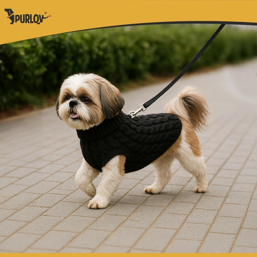 Hřejivý pletený svetr PURLOV udrží vašeho mazlíčka v teple a pohodlí i v chladných dnech. Jemná akrylová příze je příjemná na dotek, nedráždí kůži a díky pružnosti neomezuje v pohybu. Snadno se obléká, má 2 otvory pro přední tlapky a praktický otvor na vodítko.