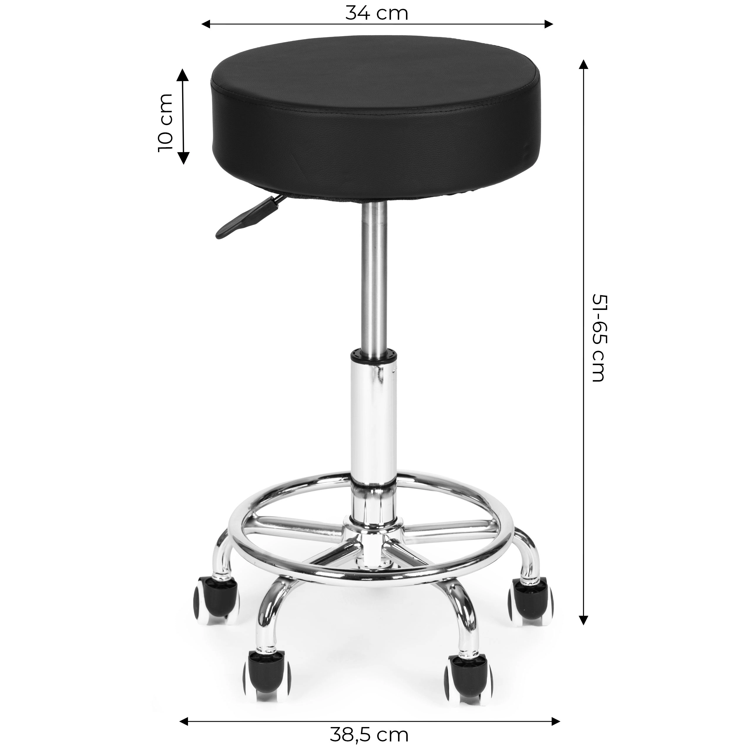 Ergonomické sezení pro profesionály – stolička skvěle slouží v kosmetických a kadeřnických salonech, lékařských ordinacích, masérnách i tetovacích studiích. Plynulý pneumatický píst umožňuje rychlé přizpůsobení výšky, zatímco 360° otočné sedadlo usnadňuje práci bez zbytečného vstávání.