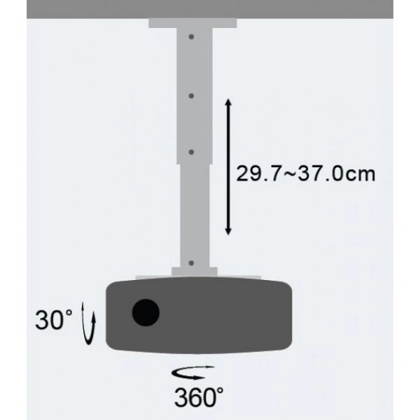 Stropní držák pro většinu projektorů umožňuje bezpečnou a estetickou instalaci. Díky robustnímu hliníkovému provedení a univerzální montážní desce je kompatibilní s širokou škálou modelů. Nastavitelná délka 30–37 cm vám pomůže přesně doladit projekční vzdálenost.