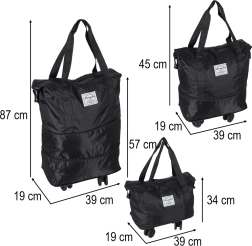 Praktická skládací cestovní taška na kolečkách pro víkend i delší cesty. Nabízí až tři úrovně rozložení, objem kolem 50 litrů, voděodolný Oxford polyester, otočná 360° kolečka a pevný zip. Díky odnímatelným kolečkům a promyšlenému vnitřnímu členění je ideální pro pohodlné balení a snadnou manipulaci.