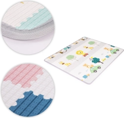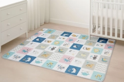 Oboustranná dětská podložka ECOTOYS z měkké EVA pěny o tloušťce 1 cm nabízí bezpečné a pohodlné místo na hraní, učení i první krůčky. Má protiskluzový povrch, tepelně izoluje od podlahy, tlumí pády a snadno se čistí. Díky možnosti srolování do kompaktního balíčku ji rychle uklidíte nebo vezmete s sebou na cesty. Obě strany s motivy abecedy a zvířátek podporují hravou výuku a rozvoj dítěte.