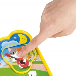Tlačítka a hmatové prvky spouštějí veselé zvuky a hudbu, které podporují sluchové vnímání a zpětnou vazbu na dotek.