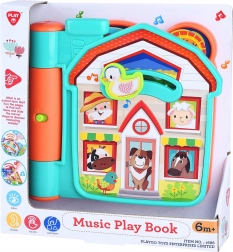 Objevte první čtení plné zábavy! Tato interaktivní plastová knížka na baterie propojuje učení a hru: otáčejte stránky, hýbejte zvířátky a poslouchejte veselé melodie. Díky odolnému provedení, jasným barvám a snadnému ovládání rozvíjí jemnou motoriku, smysly a zvědavost dětí už od 6 měsíců. Baterie 2× AAA jsou součástí.