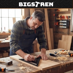 Univerzální tesařský úhelník BIGSTREN pro přesné měření a značení úhlů 90° a 45°. Nabízí čitelné stupnice v cm a palcích, pevnou hliníkovou konstrukci s černou povrchovou úpravou a dlouhou životnost. Ideální pro dílnu i hobby, součástí je 5 tesařských tužek.
