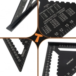 Robustní tělo ze slitiny hliníku je odolné vůči poškození a deformaci. Černá povrchová úprava zlepšuje čitelnost měřítka a chrání nástroj při každodenním používání. V balení najdete i 5 tesařských tužek pro okamžité použití v terénu i dílně.