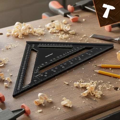 Spolehlivý tesařský úhelník BIGSTREN o rozměrech 30 × 30 cm je navržen pro rychlé a přesné značení i měření. Díky kombinaci úhlů 90° a 45°, stupnic v cm i palcích a zoubkované hrany zvládnete pravoúhlé i šikmé řezy, přenášení rozměrů i srovnávání hran.