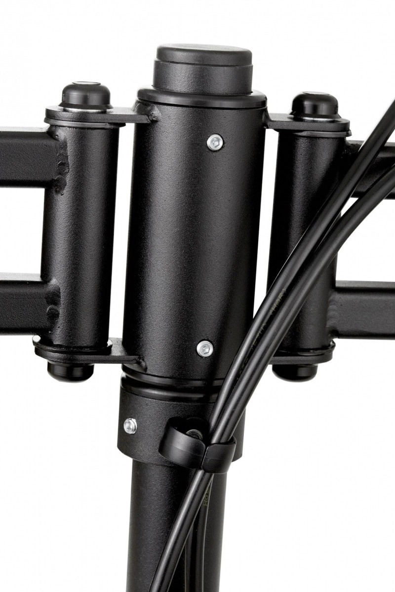 Držák je ideální pro dispečinky, průmyslové provozy, dopravu i centra monitoringu. Součástí je duální systém uchycení (C-svorka nebo průchodka) pro flexibilní instalaci na různé typy stolů a integrované vedení kabeláže pro čistý vzhled pracoviště.