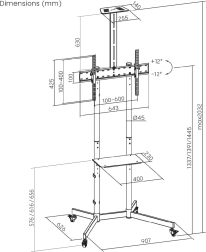Výškově nastavitelná police pro média (do 5 kg) a horní polička pro kameru dělají ze stojanu perfektní řešení pro videokonference.