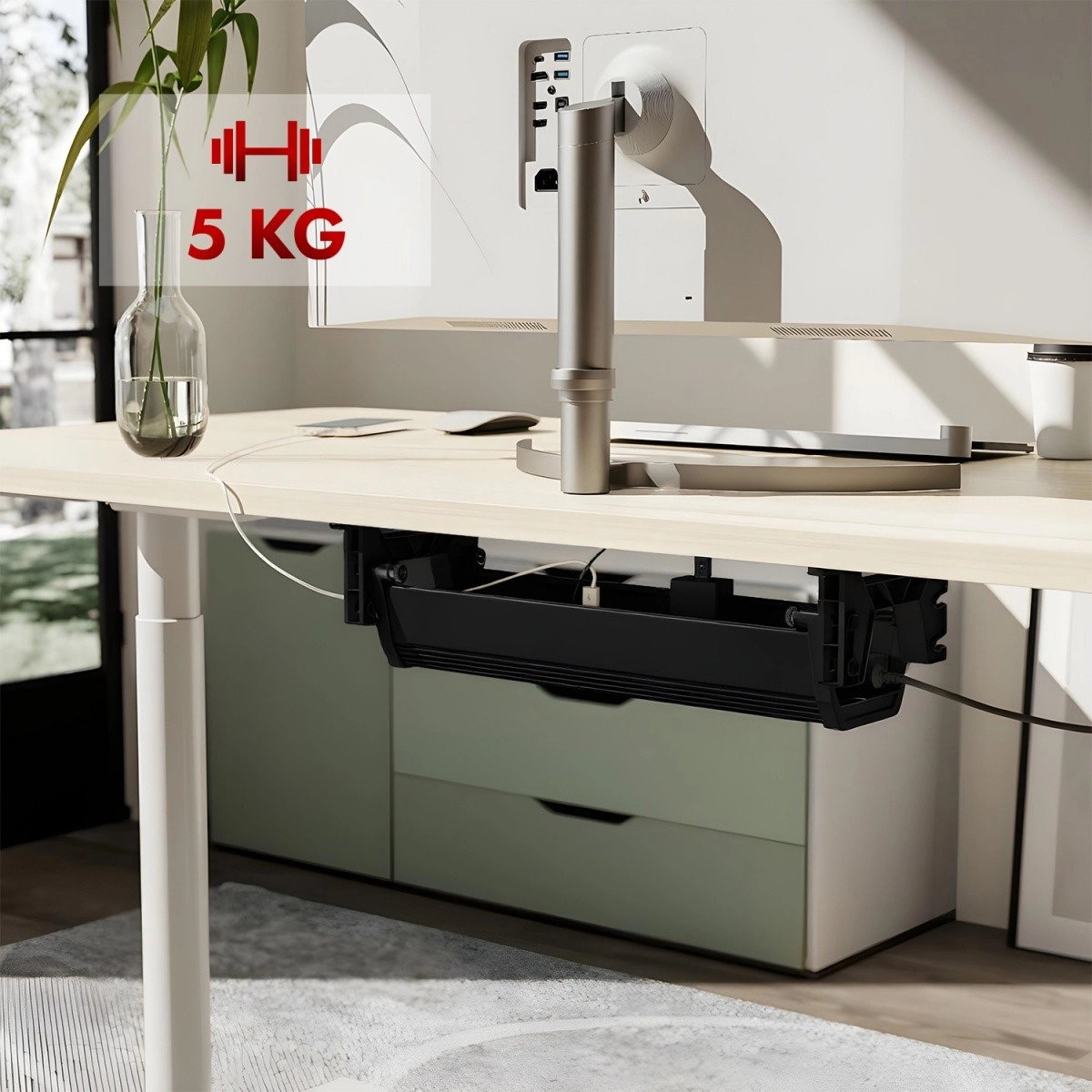 Maclean MC-106 je spolehlivý podstolní organizér, který efektivně skryje přepěťové lišty, adaptéry i přebytečnou délku kabelů a zlepší bezpečnost na pracovišti. Díky chytré konstrukci z odolného materiálu zvládne zatížení až 5 kg a přitom zůstává nenápadný pod deskou stolu.