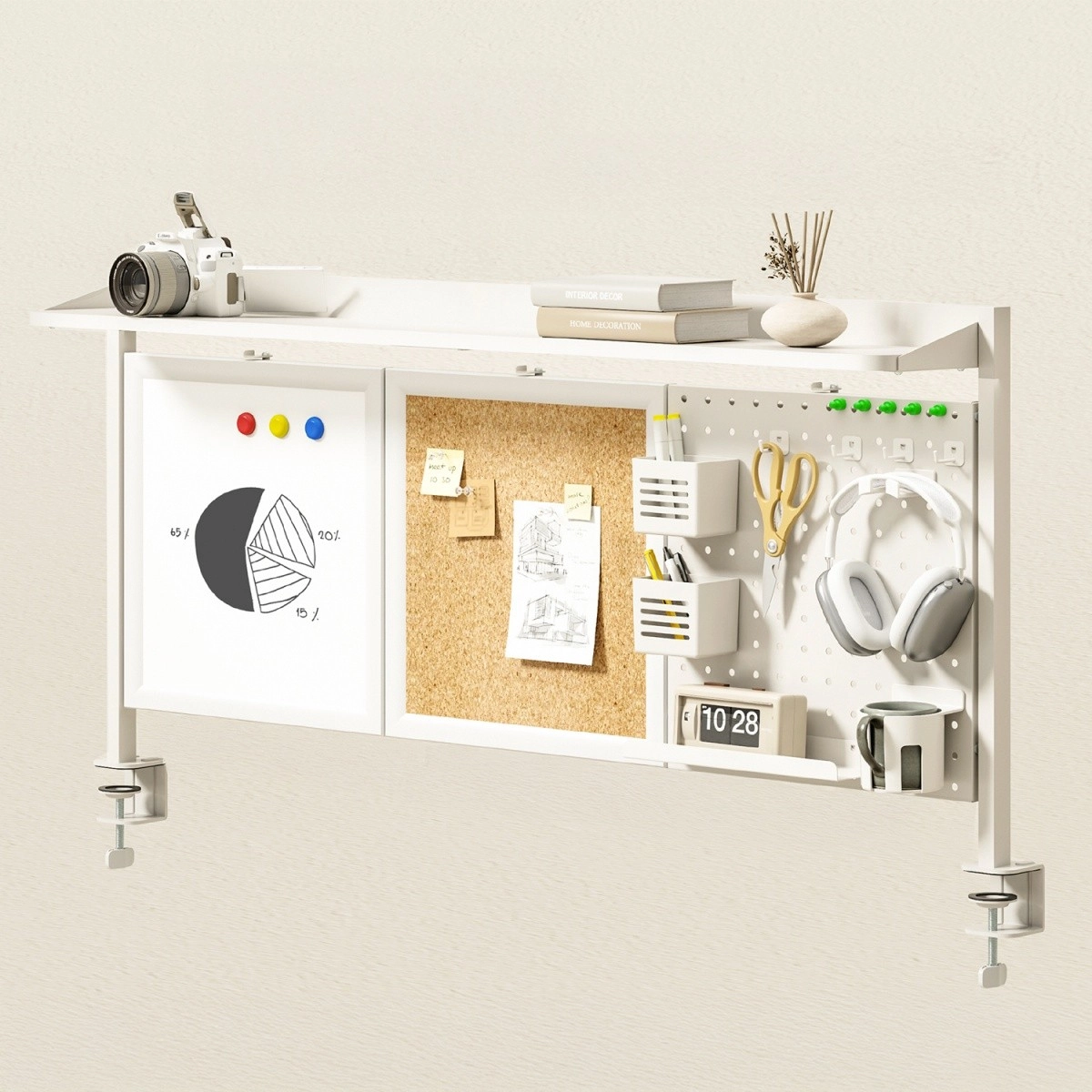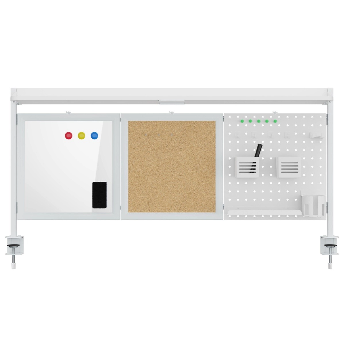 Vylepšete svou pracovní plochu multifunkční nadstavbou, která spojuje tři typy organizačních ploch v jednom kompaktním řešení. Stabilní kovové svorky pevně uchytí systém k desce stolu, takže instalace je rychlá a bez nutnosti vrtání. Ideální pro domácí kancelář, ateliér i dílnu.