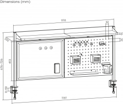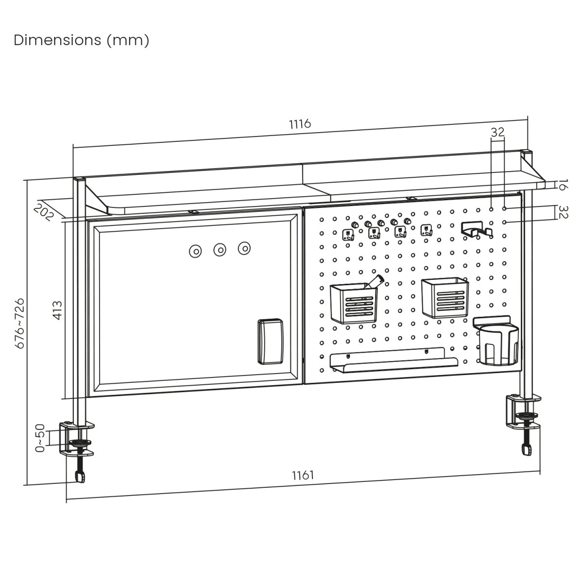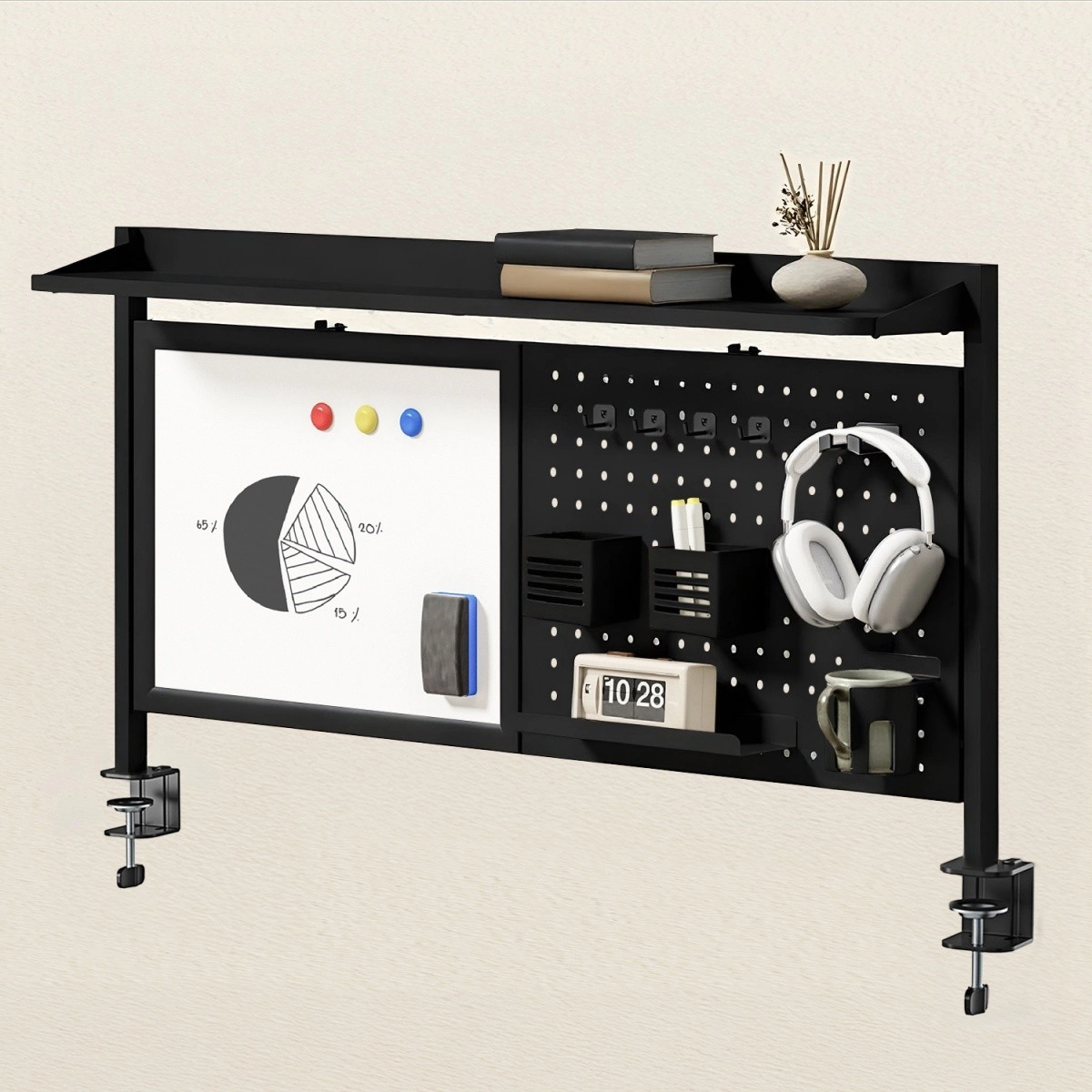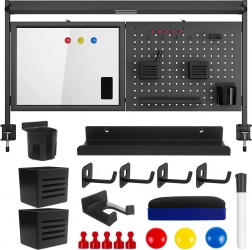 Tato víceúčelová nadstavba promění každý stůl v přehlednou a efektivní pracovní zónu. Stabilní uchycení pomocí kovových C‑svorek šetří místo a nevyžaduje žádné vrtání. Magnetická sucho stíratelná tabule je ideální pro rychlé poznámky, úkoly nebo nápady, které snadno setřete přiloženou houbičkou, a perforovaný panel umožňuje volné přeskupení držáků a košíků dle vašich potřeb.