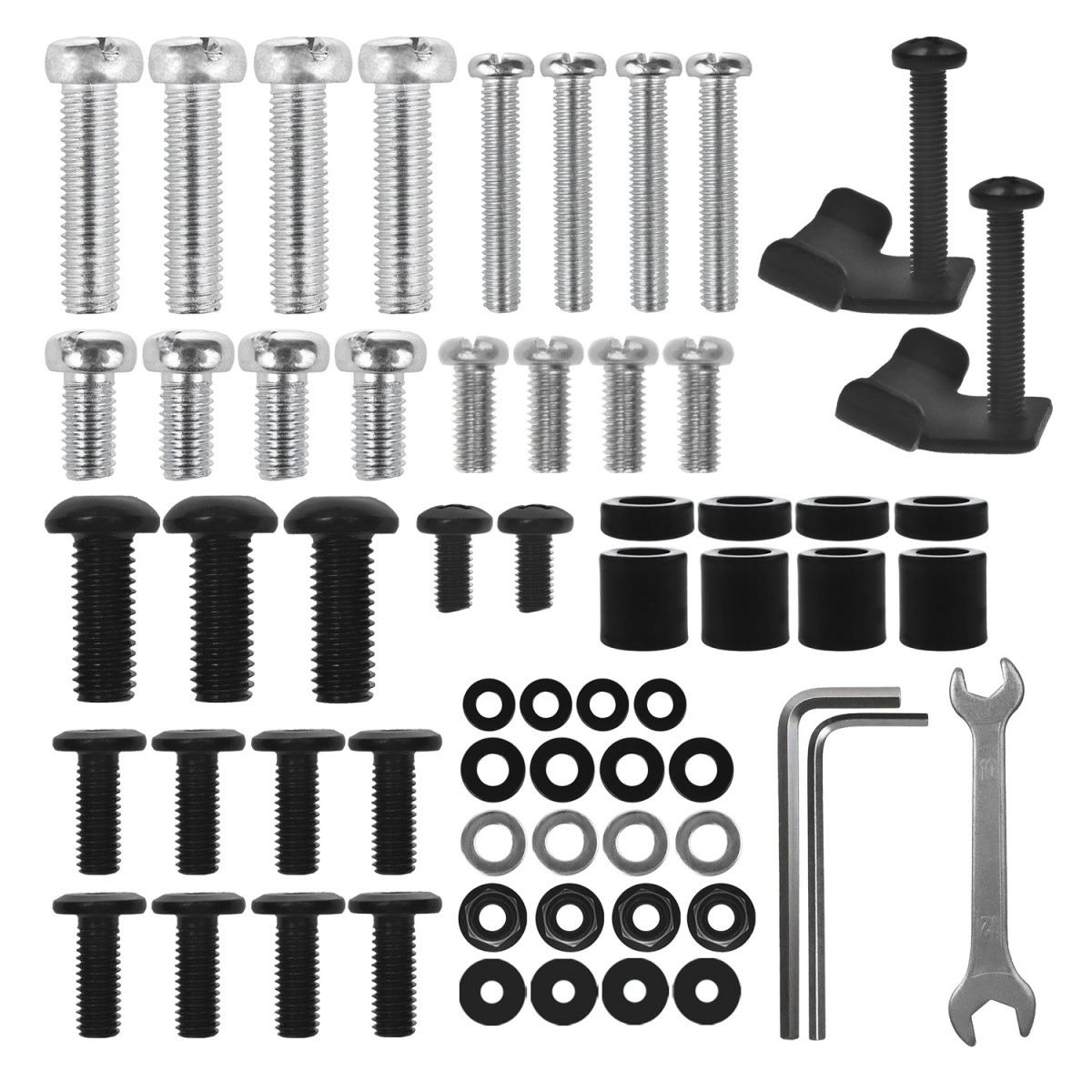 Součástí je pestrá sada šroubů, distančních podložek, imbusových klíčů a nářadí – montáž zvládnete rychle a bez shánění dílů.