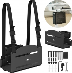 Univerzální držák pro stolní PC šetří místo a zvyšuje pořádek na pracovišti. Umožňuje montáž na zeď či sloupek a díky pevné ocelové konstrukci a nastavitelným popruhům bezpečně udrží vaši skříň. Široký rozsah nastavení hloubky zajistí kompatibilitu s většinou tower skříní, zatímco nosnost až 10 kg poskytne spolehlivou oporu i při vibracích.