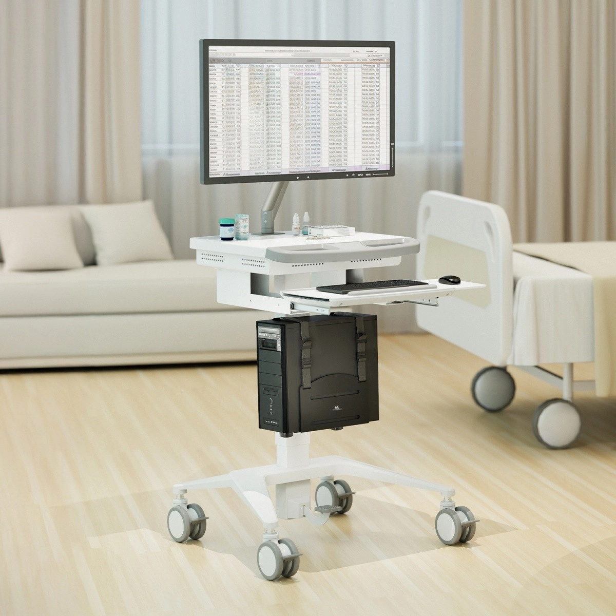 Montáž na stěnu nebo svislý sloupek uvolní prostor pod stolem a zpřehlední kabeláž pro lepší ergonomii.