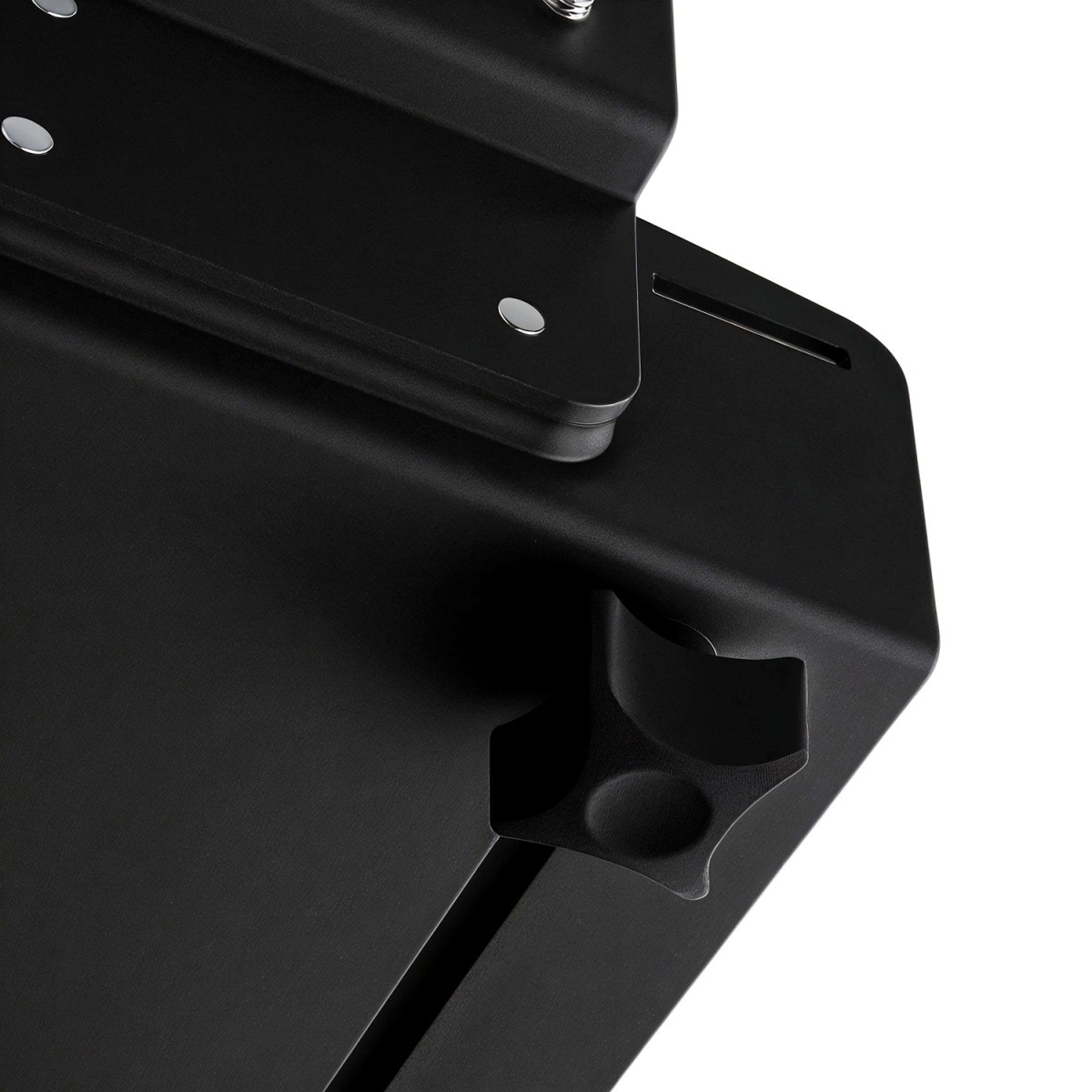 Robustní ocelová konstrukce s nosností do 10 kg je doplněna dvěma nastavitelnými pásky s rychloupínacími přezkami, které pevně fixují skříň a zabraňují jejímu posunu či převrácení. Díky nastavitelné hloubce (široký rozsah) držák snadno přizpůsobíte různým typům PC skříní typu tower.