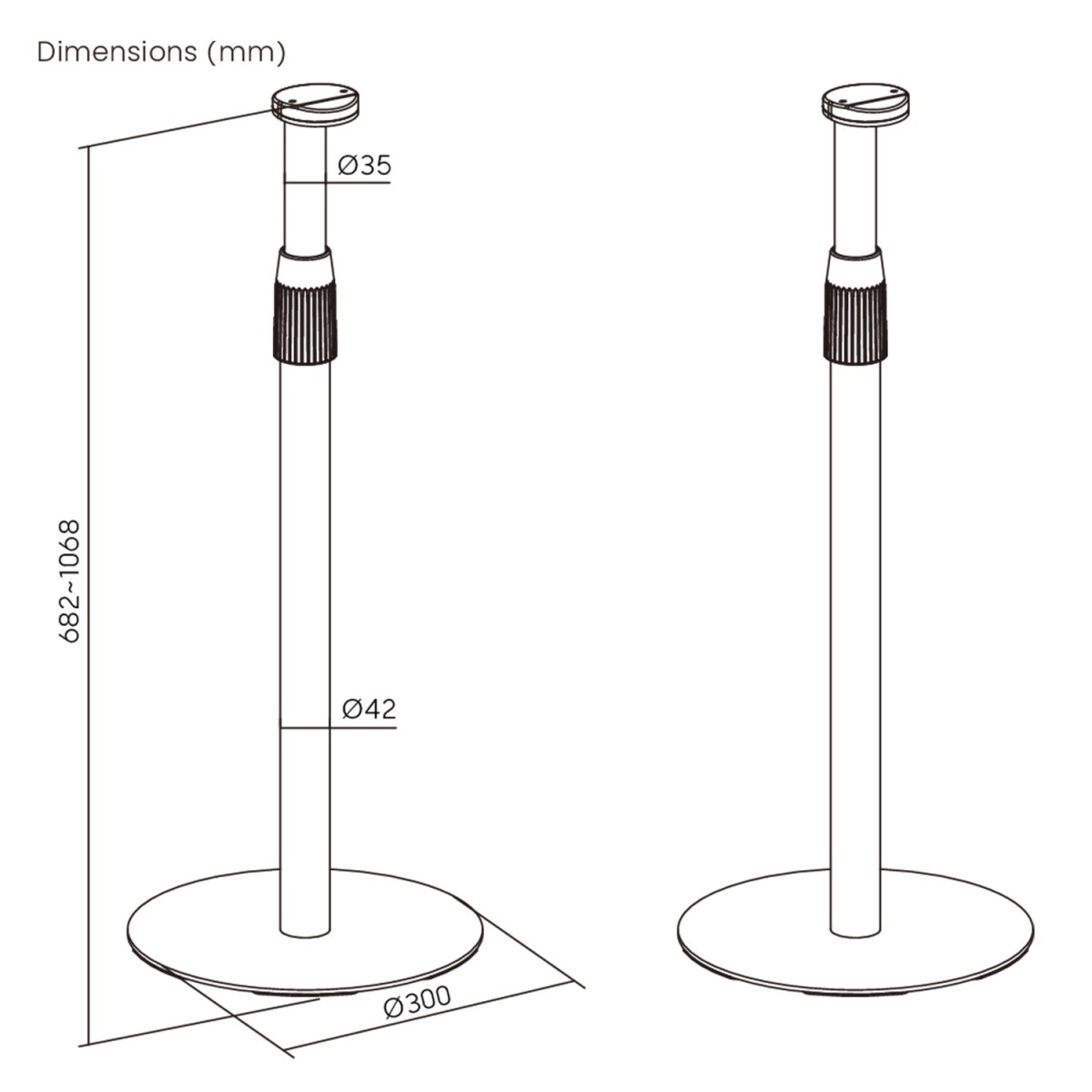 Podlahové stojany MC-496 jsou navrženy pro dokonalé umístění reproduktorů SONOS ERA 100 a ERA 300. Díky teleskopickému nastavení výšky snadno doladíte optimální poslechovou úroveň a směrování zvuku. Robustní ocelová základna a pevný sloup zajišťují bezpečnou stabilitu bez nežádoucích vibrací.
