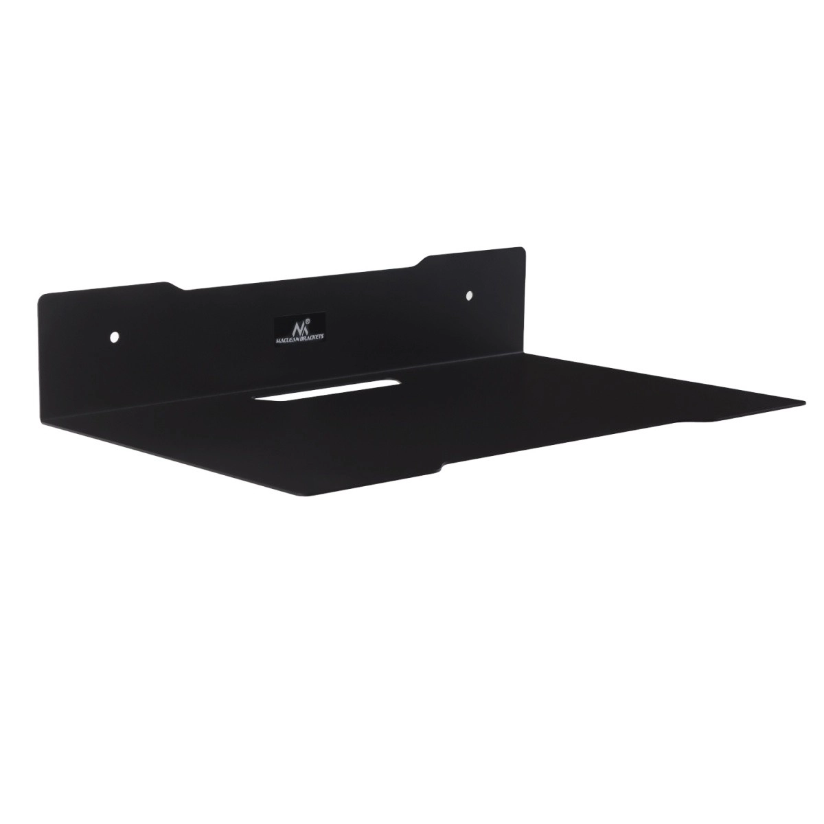 Nástěnná police MACLEAN MC-122 je elegantní a pevné řešení pro organizaci AV techniky. Minimalistický design s matnou povrchovou úpravou se hodí do moderních interiérů a šetří místo na nábytku. Integrovaný průchod pro kabely udržuje instalaci přehlednou a bezpečnou.