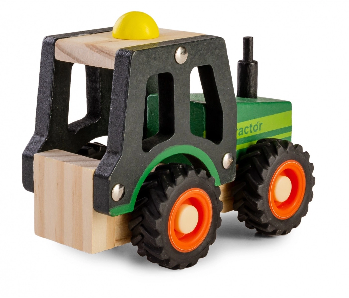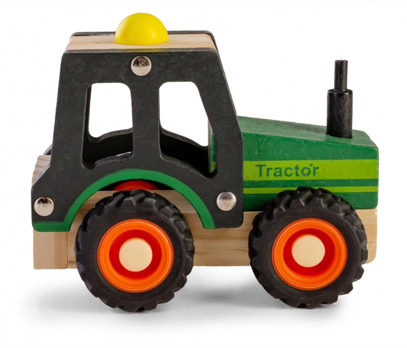 Tělo traktoru je vyrobené z kvalitního dřeva pro dlouhou životnost a příjemný hmatový vjem.