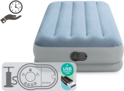 Praktická a pohodlná nafukovací postel pro jednoho dospělého s rozměry 191 × 99 × 36 cm. Díky technologiím Fiber-Tech a Dura-Beam nabízí stabilní oporu, měkký velurový povrch a dlouhou životnost. Vestavěná USB elektrická pumpa zajistí rychlé nafouknutí kdekoli – z powerbanky, nabíječky či USB portu. Maximální nosnost 136 kg, součástí je taška na přenášení a opravná záplata.