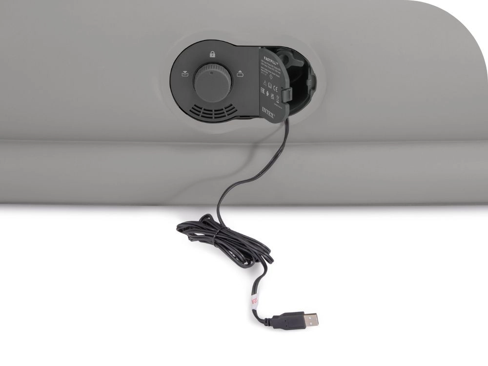 Vestavěná USB pumpa 5V/2A nafoukne matraci přibližně za 240 sekund. Napájíte ji jednoduše z powerbanky, nabíječky telefonu, USB portu nebo autonabíječky – ideální na doma i na cesty. Certifikace AirLock garantuje těsnost a spolehlivost i při častém používání.