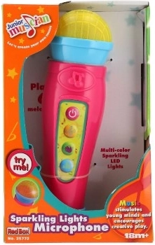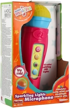 Mikrofon s ozvěnou plast 20cm na baterie se světlem se zvukem 2 barvy v krabičce 13x20x6cm