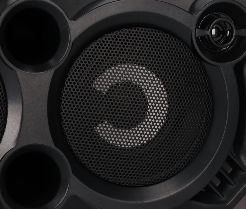 Díky konstrukci Bass reflex a hudebnímu výkonu až 100 W (3 200 W P.M.P.O.) hraje hlasitě, plně a s důrazem na basy. Ekvalizér umožní upravit výšky a basy, takže si zvuk doladíte podle svého. Funkce karaoke s 6,5mm mikrofonním vstupem a samostatným ovládáním echo efektu rozproudí každou párty, kterou podtrhne multibarevné LED podsvícení.