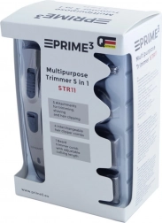 PRIME3 STR11 kombinuje přesné zastřihování, hladké holení a detailní styling. V balení najdete pět výměnných hlav: zastřihovač vlasů a vousů, mini foliovou holicí hlavu, detailní nástavec na tvarování, zastřihovač chloupků v nose a uších a nástavec na úpravu obočí. Pro kontrolu nad délkou slouží čtyři hřebeny 3/6/9/12 mm a samostatný nastavitelný nástavec na vousy 3–5 mm.