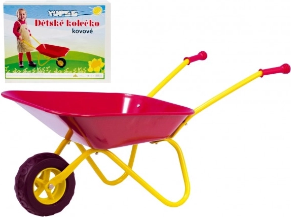 Dětské kolečko Yupee z odolného plechu zvládne každodenní zátěž na zahradě i na pískovišti. Díky ergonomickým plastovým rukojetím se dětem dobře drží a stabilní konstrukce pomáhá při převážení písku, hlíny či hraček.